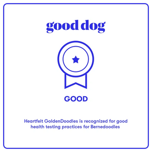 We have been awarded a Good dog health testing certificate for the breeding of our Bernedoodles. We do a variety of testing to ensure that your new friend is healthy and happy.